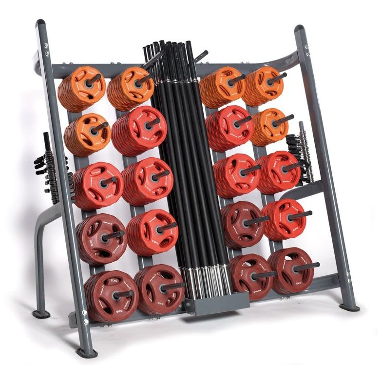Цветовая маркировка дисков для легкой идентификации веса.