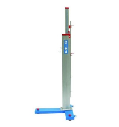Регулировка высоты планки осуществляется с помощью рукояток. Двойная телескопическая штанга с опорой. Устойчивое основание с встроенными колесами для перемещения. Производство EU.