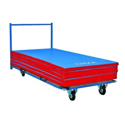 Очень прочная и маневренная тележка, идеально подходит для хранения матов в ограниченном пространстве. Деревянная площадка установлена на металлическом каркасе с 4 широкими обрезиненными колесами (2 поворотных), которые не оставляют следов. Производство EU.