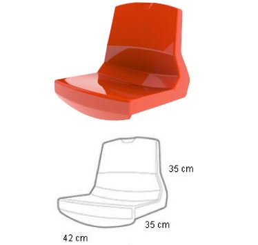 Сиденье в форме скамьи, без спинки, состоит из двух частей: сиденья и соединительных перемычек, образуя скамьи без ограничения длины. Для формирования обычных и металлических трибун (телескопические или разборные).