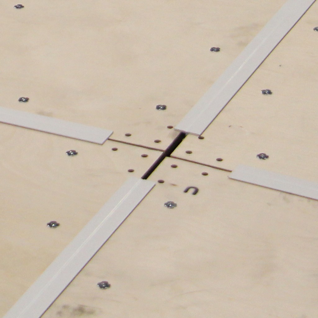 Высокоэластичный сборный фанерный пол с амортизациоными пеноблоками. Сборные панели пола соединяются друг с другом с помощью крепления и фиксирующих пластин, что обеспечивает ровную плоскую поверхность.
