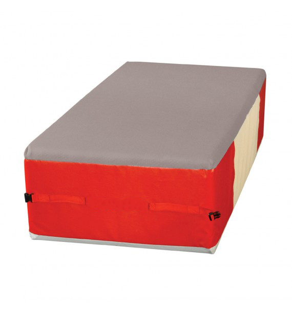 Сетки для выпуска воздуха расположены по бокам. Оснащены ремнями и застежками для создания зон требуемого размера. Противоскользящее основание. Имеет 4 ручки для переноски. Верхняя часть из эластичного материала джерси для более комфортного приземления.