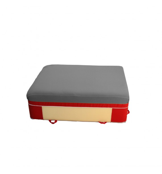 Нижняя часть чехла выполнена из ПВХ «под кожу» , а верхняя часть — из эластичного легко моющегося материала джерси. Это компромиссным вариант между традиционным матом и ямой приземления. 8 ручек для переноски.