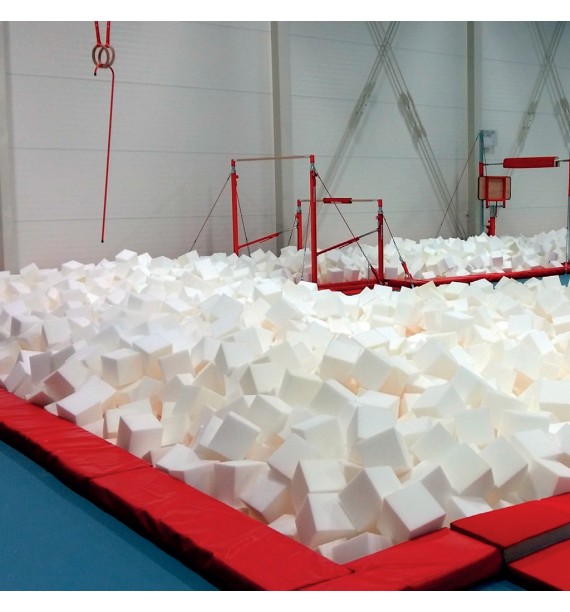 Модель ямы идентична модели на платформе. Обеспечивает превосходное поглощения удара при приземлении. Заполнена кубиками 3 размеров, что гарантирует их естественное перемешивание. Кубики могут быть покрыты защитным чехлом с классом пожарной безопасности М1.