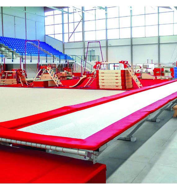 дорожкой для акробатических прыжков, способствует процессу обучения, фокусируя внимание на толчке. Металлическая рама и сетка SPORTEX из ПВХ с обкладочным матом по периметру, соединенные пружинами.