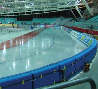 На основании технических деталей и точных чертежей катка определенное количество стоек будет закреплено на бетонной поверхности, а также стоек, чтобы обеспечить вход и выход спортсменов и машин для шлифовки льда. Область вокруг дорожки должна быть свободна от препятствий на расстоянии 1 метра, чтобы отступы могли перемещаться за пределы поверхности льда.