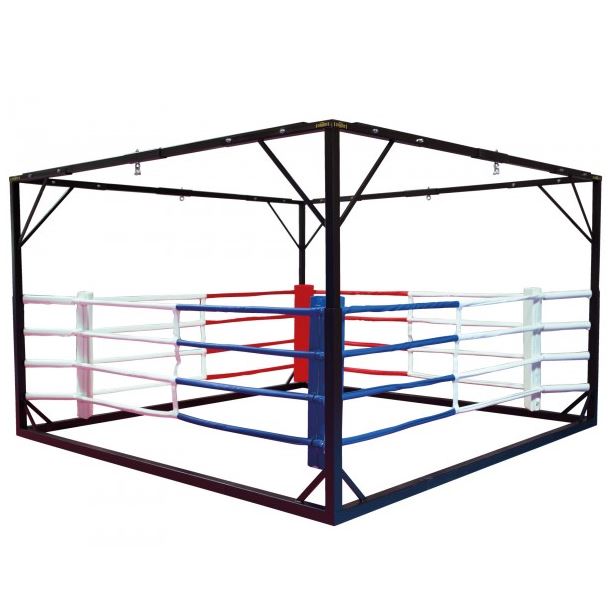 Состоит из прочной стальной рамы с внешними размерами 3,75 м х 3,75 м и высотой 2,50 м. Стальная рама имеет 4 подвеса для боксерских мешков, внутри ринг размером 3 х 3 м.