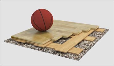 Дополнительно: простой спортивный пол, хорошее решение как для школьных, так и для спортивных залов из-за легкости установки.