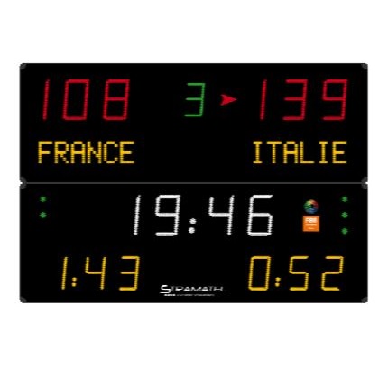 Командные фолы (баскетбол) или сеты (волейбол, теннис, настольный теннис ...) / Таймер удаления (гандбол): 2x3 желтых светодиодных цифры (25 см)