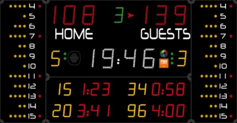 - отображение счета, таймера, периода матча, фолов команд и тайм-аутов