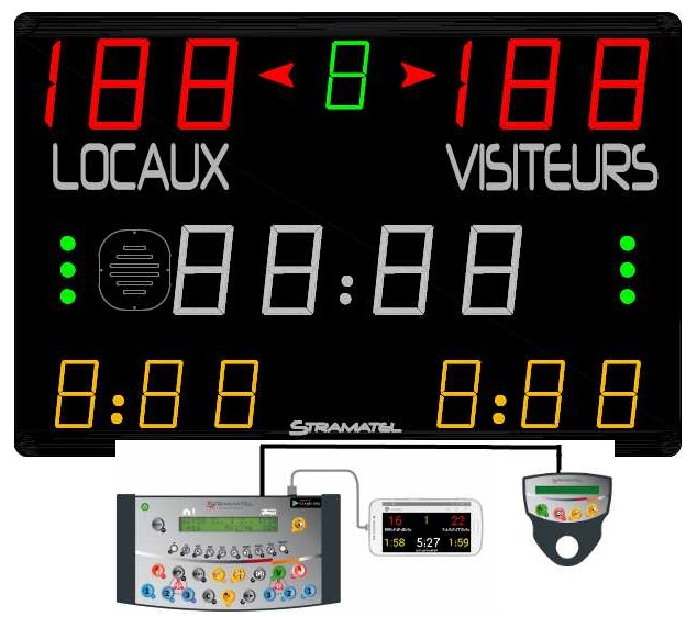 - отображение счета, таймера, периода матча, фолов команд и тайм-аутов