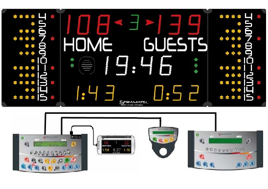 - отображение счета, таймера, периода матча, фолов команд и тайм-аутов