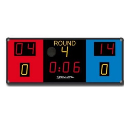 Таймер (раунды и брейк): 3 красные светодиодные цифры (16 см) + 2 мигающие точки