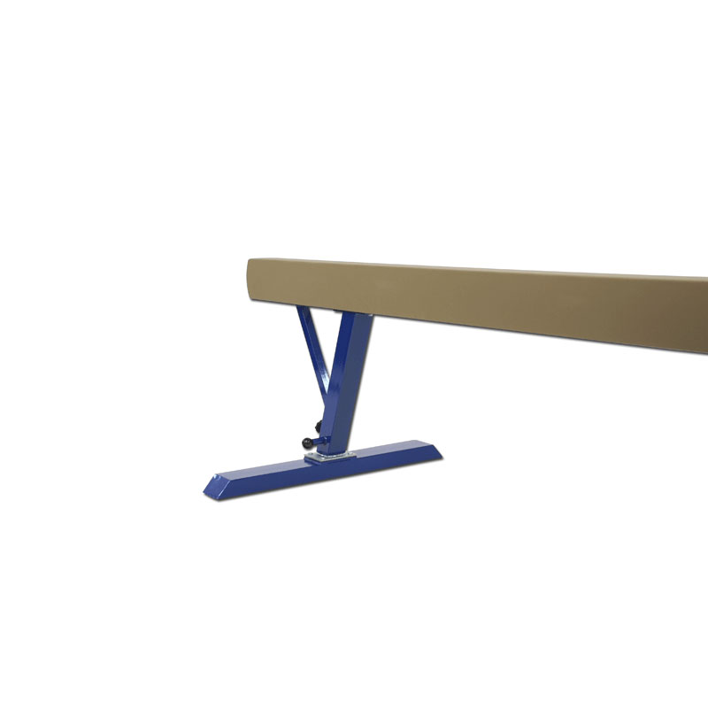 Женское гимнастическое бревно, выполнено из алюминия и покрыто синтетической кожей, сечение 13х16 см, ширина рабочей поверхности 10 см. Телескопические опоры из окрашенной хромированной стали с резиновыми накладками, с устройством регулировки высоты в промежутке между 80 и 120 см. Производство EU.