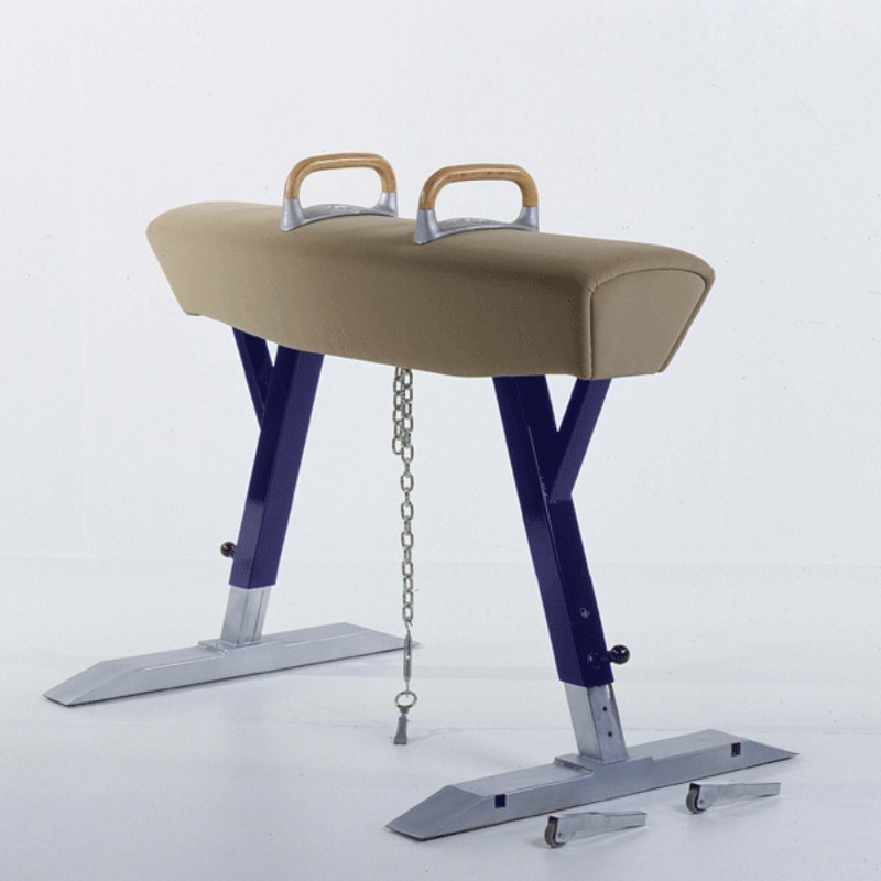 Подходит для соревнований, снабжен рукоятками, стальные опоры оснащены автоматическим регулятором высоты, в комплект входят устройства для транспартировки. Натяжная цепь и анкерное крепление для крепления к полу. Деревянный корпус обтянут замшей с мягкой подкладкой. Оснащен деревянными ручками, закрепленными на алюминиевых опорах, ручки регулируются по ширине. Производство EU.