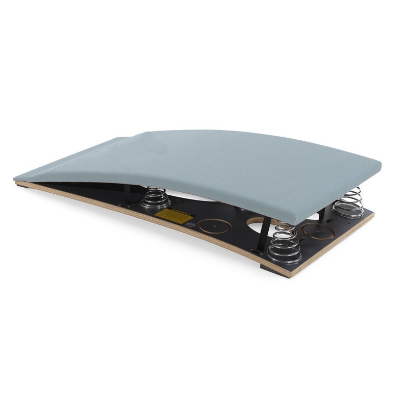 Для соревнований. Двойная пружинная система, регулируемая. Деревянная поверхность с мягкой подкладкой и обтянутая ковролином. Конструкция из окрашенной стали с колесами для транспортировки. Производство EU.