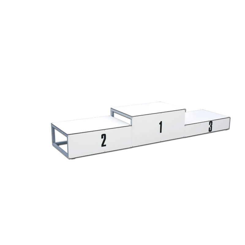 Стальная конструкция с 3 пронумерованными платформами. Подходит для церемоний награждения нескольких человек. Плафтормы покрыты меламиновым покрытием и могут использоваться на улице. Производство EU.