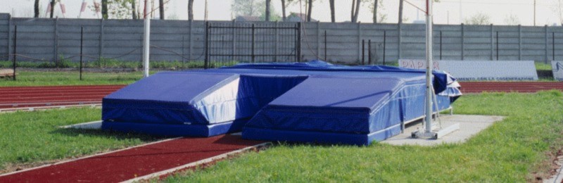 Большое место приземления для проведения соревнований по прыжкам с шестом. Состоит из четырех секций.