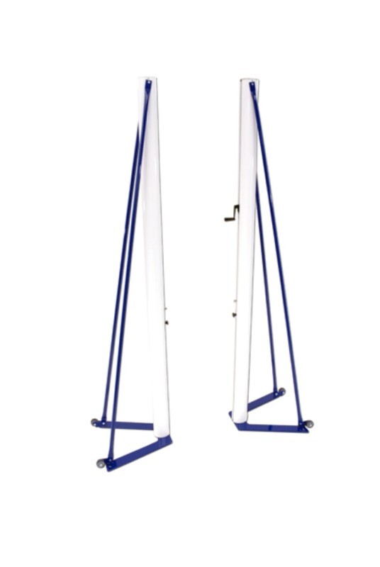 Стойки изготовлены из алюминия с внутренним усилением конструкции. Стойка крепится к стальной базе, оснащеной нейлоновыми колесами для транспортировки, которая крепится к основанию/полу. Стойки оснащены системой регулировки высоты сетки со стопором. В комплект входит устройство натяжения сетки, которое установлено на одной из стоек и анкера для крепления к основанию/полу. Производство EU.