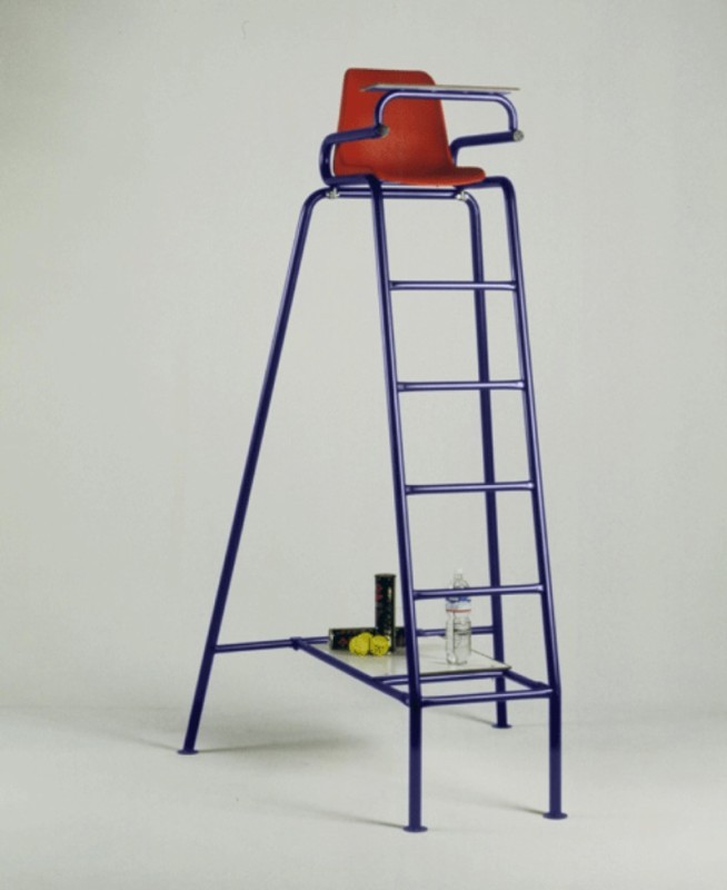 Конструкция из гальванизированной стали, диаметр профилей 40 мм, в комплекте с цветным полипропиленовым сиденьем со спинкой, складной стол и нижняя полка выполнены из hpl. Передвижной на колесах. Легко демонтируется. Производство EU.