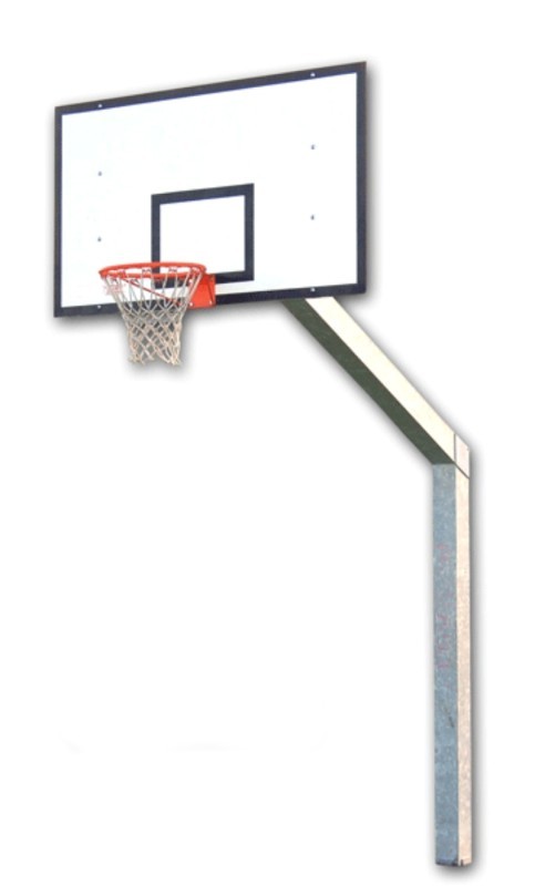 Изготовлена из гальванизированной стали сечением 150х150х3 мм, целиком сварная конструкция. С закладным стаканом и крышкой. Оснащена баскетбольным щитом из hpl с габаритами 180х105х1 см, который крепится к стальной раме со стабилизирующей штангой, соединенной со стрелой выноса. В комплект входят фиксированное стальное кольцо и нейлоновая сетка. Производство EU.