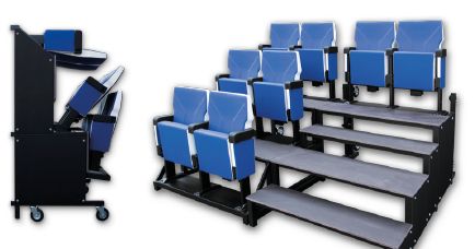 Для использования внутри помещений. Общая длина 10 м. Модули трибуны могут быть сложены друг в друга (тип "Матрешка") для удобства хранения.