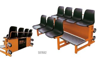 Для использования внутри помещений. Глубиной 2 м, с 3-мя ступенями и 12-тью цветными пропиленовыми сиденьями, которые установлены на стальную конструкцию в порошковой окраске (цвет можно подобрать), сборно-разборная с колесами для транспортировки. Производство EU.