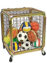 Изготовлена из стали в порошковой окраске, передвижная на колесах. Стенки крепятся болтами, оснащена замком. Габариты: 70x70x90 см, вместимость: 25/30 мячей. Производство EU.