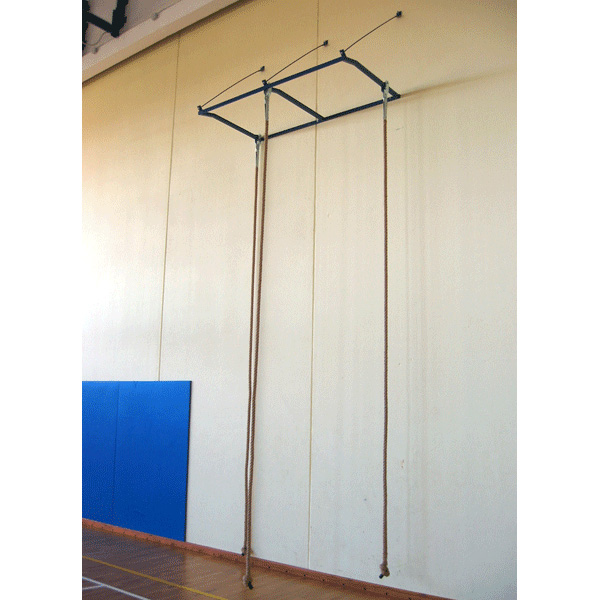 Рама из стали в порошковой окраске, складная. Монтируется в стену. К раме могут крепиться: канаты, шесты и лестницы. При необходимости рама складывается к стене для экономии места, когда снаряды не используются. На раму можно установить два или три снаряда. Производство EU.