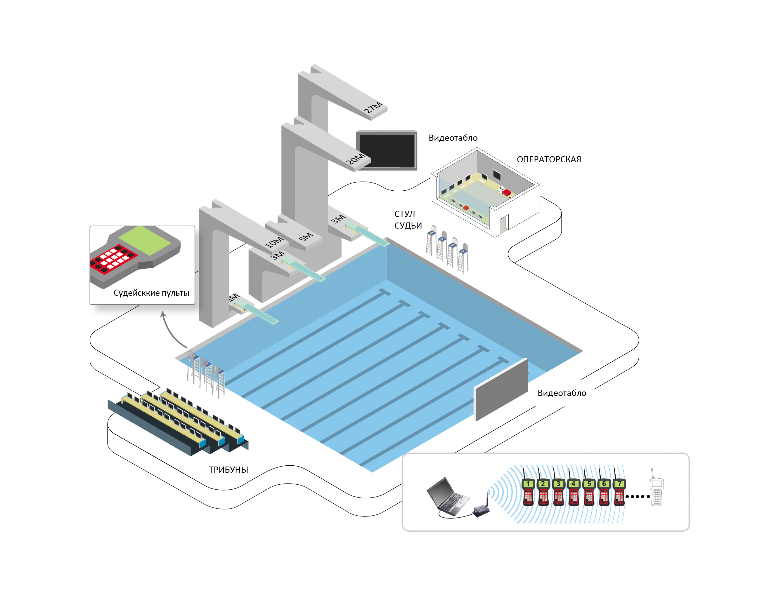 Система судейства и хронометража для прыжков в воду - соответствие FINA