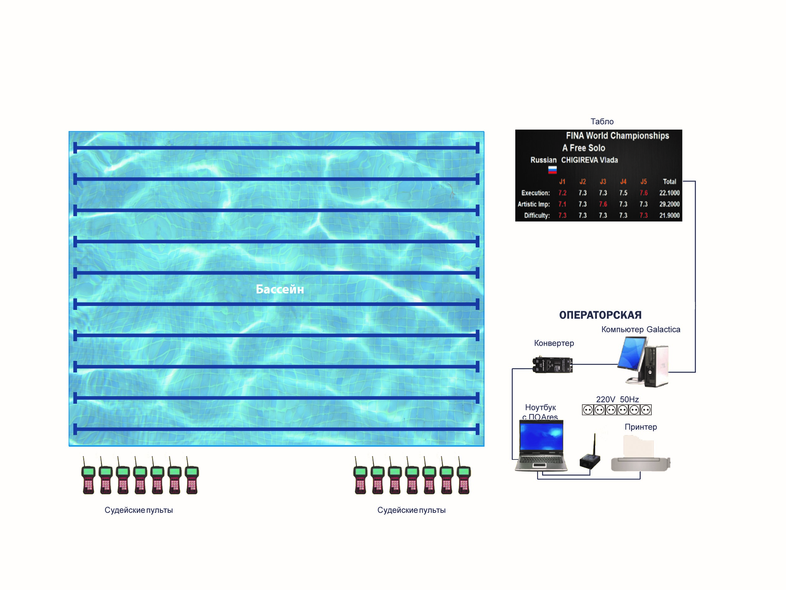 Система судейства и хронометража для синхронного плавания - соответствие FINA